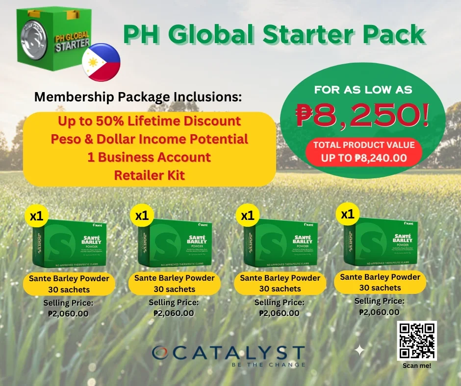 Product Overview: Embark on an exciting journey towards financial freedom with the Santé Barley Business Package (Global Starter Package). This comprehensive package includes everything you need to kickstart your entrepreneurial venture and start earning extra income from the comfort of your own home.